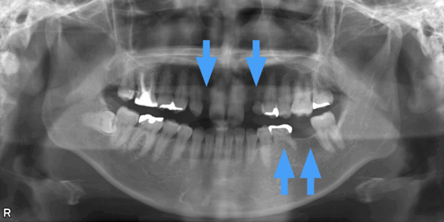大人の歯がないので乳歯が生えかわらず残っている事があります。それが「大人の乳歯」の原因である事が多いです。