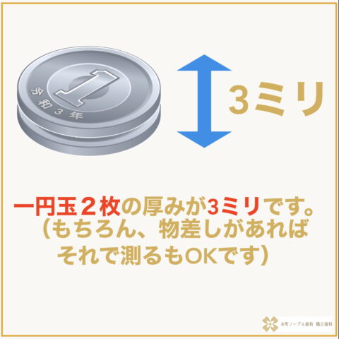 一円玉2枚の厚みが3ミリです。 (もちろん、物差しがあればそれで測るもOKです。)