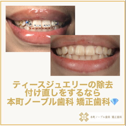 ティースジュエリーの除去、付け直しなら1年間で100名以上がご来院している本町ノーブル歯科 矯正歯科にお任せぐださい!!