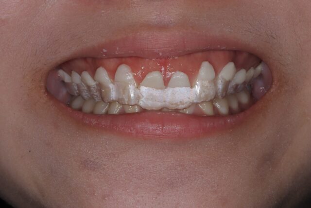 治療後「歯が長くなると、変にならないのか?」そう思われる患者様が多いと思います。このシミュレーションマウスピースを見て頂くことで多くの患者様が安心して治療を受けて頂けます。