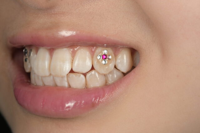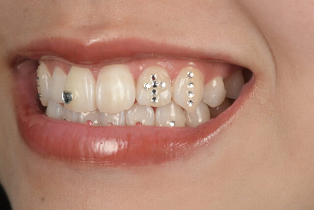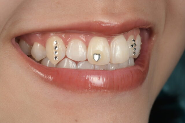 アリアナグランデやk-popアイドルが数年前からやっており、日本でも流行りつつある、歯にジュエリーをつけて楽しむファッションアイテムです。