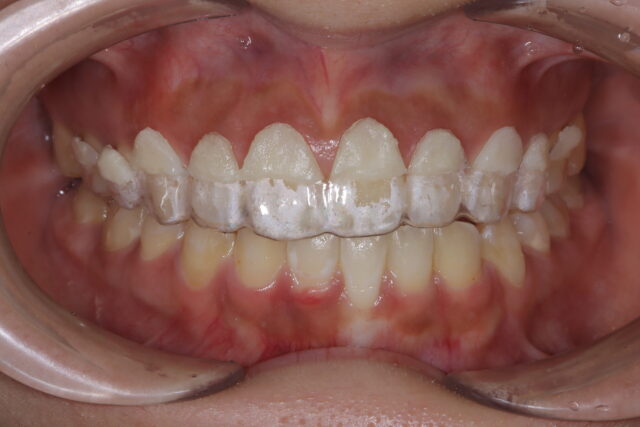 治療後「歯が長くなると、変にならないのか?」そう思われる患者様が多いと思います。このシミュレーションマウスピースを見て頂くことで多くの患者様が安心して治療を受けて頂けます。