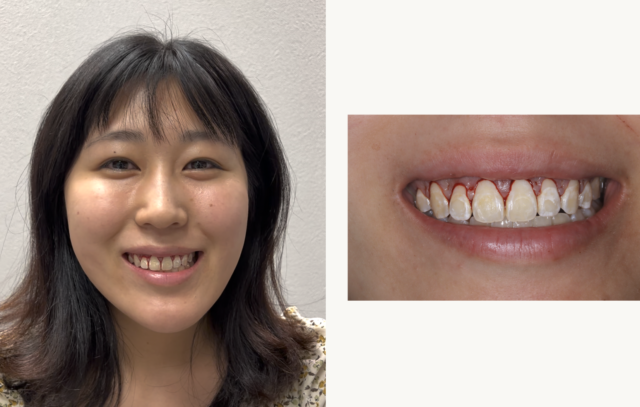 デメリット、注意点:出血、腫脹、疼痛、内出血の可能性がある矯正をした後ガミースマイルで10年間ずっと悩んでいたけど治療した症例はコチラ