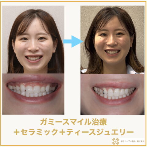 ガミースマイル治療+セラミック治療+ティースジュエリー 審美歯科なら本町ノーブル歯科 矯正歯科!!