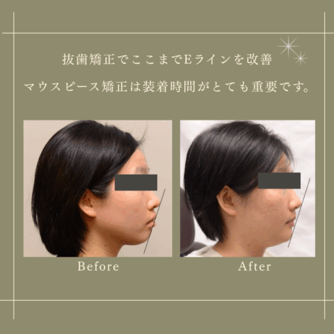 最近では抜歯矯正により過度に口元が凹みすぎてしまうトラブルが多くなっています。本町ノーブル歯科 矯正歯科では抜歯矯正や、Eラインを変える矯正をする場合に矯正後の横顔がどうなるかをシミュレーションして治療しています。
